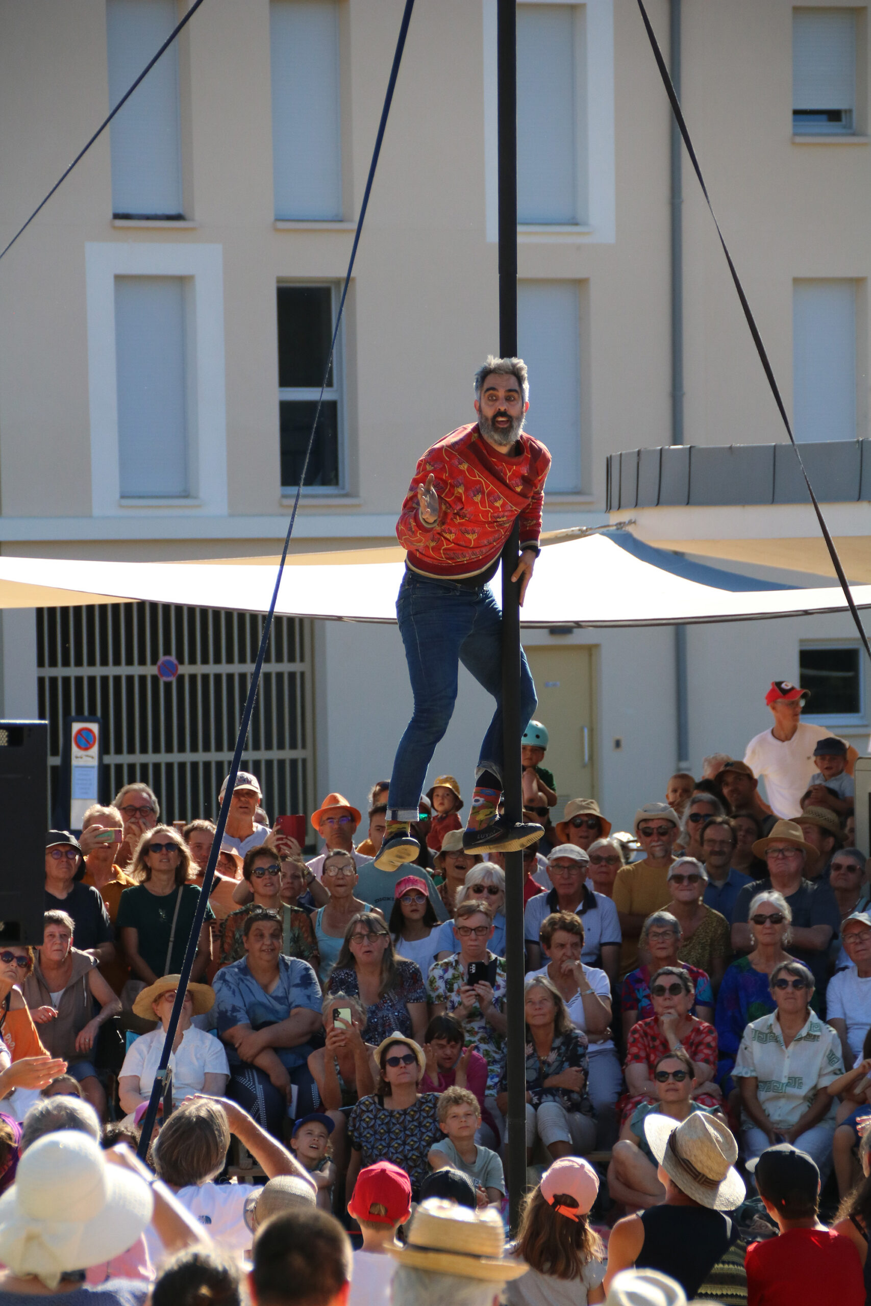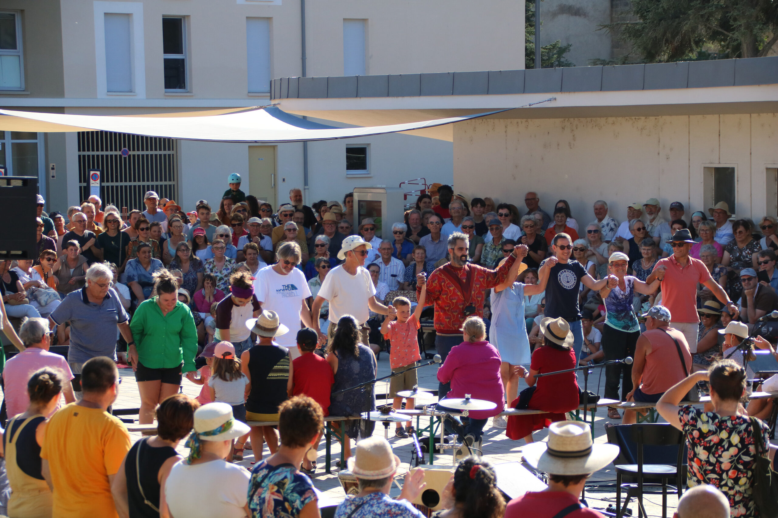 Rendez-vous de lancement de la saison culturelle, la place des Fontaines s’anime pour un spectacle grand public.